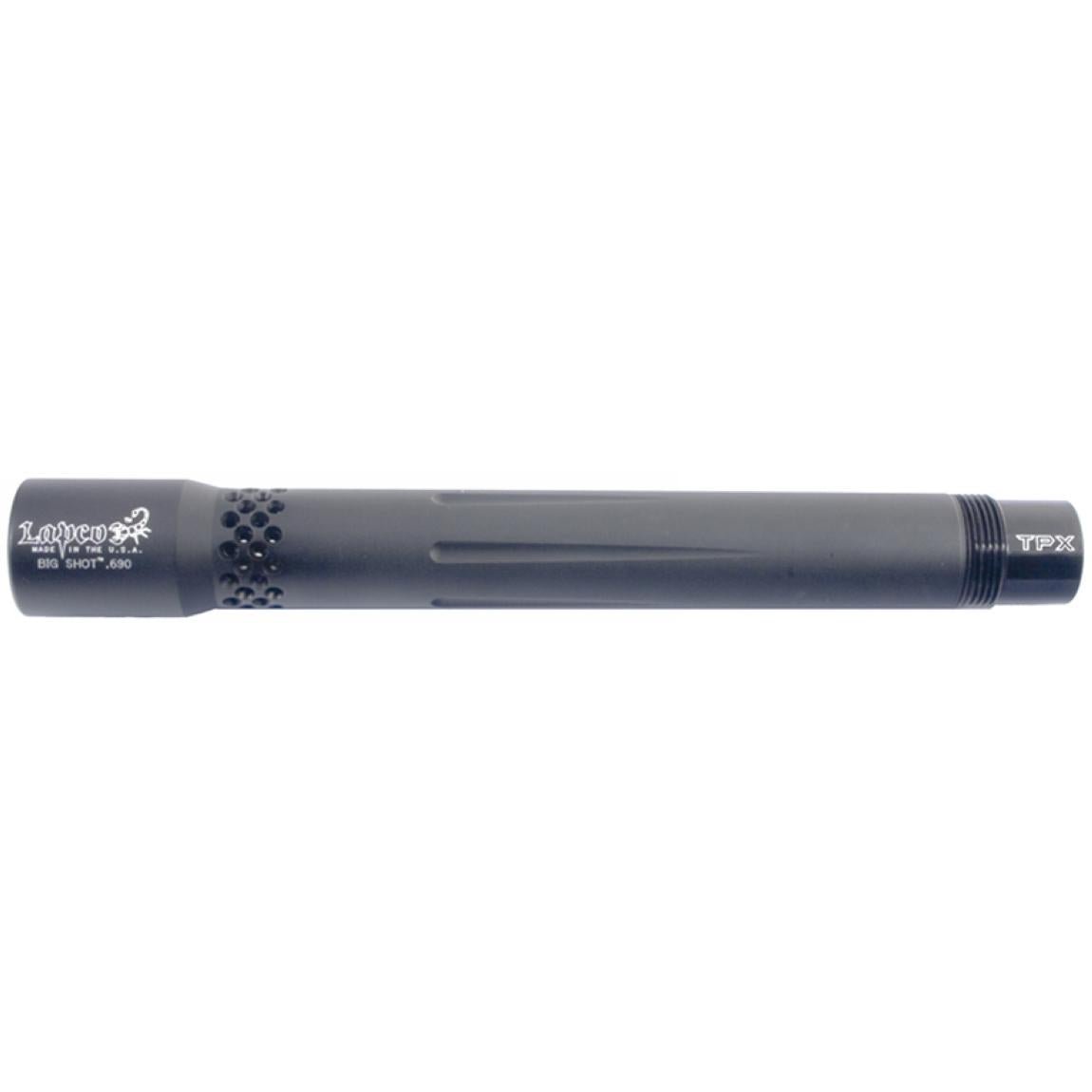 All LAPCO barrels are billet machined. They do not use tubing to make their barrels as many other paintball manufacturers do. LAPCO barrels are gun-drilled and micro-honed to exact sizes leaving a near mirror finish to make them the smoothest, most accurate barrels available. Other manufacturers barrels vary in size down the bore, creating wave like distortions. LAPCO barrels are so straight that they even clean faster and easier, making them the best barrels for the money. The unique counter-bore and porting pattern keeps gas pressure behind the ball where it needs to be and bleeds the pressure just before it leaves the barrel to help increase efficiency and accuracy.