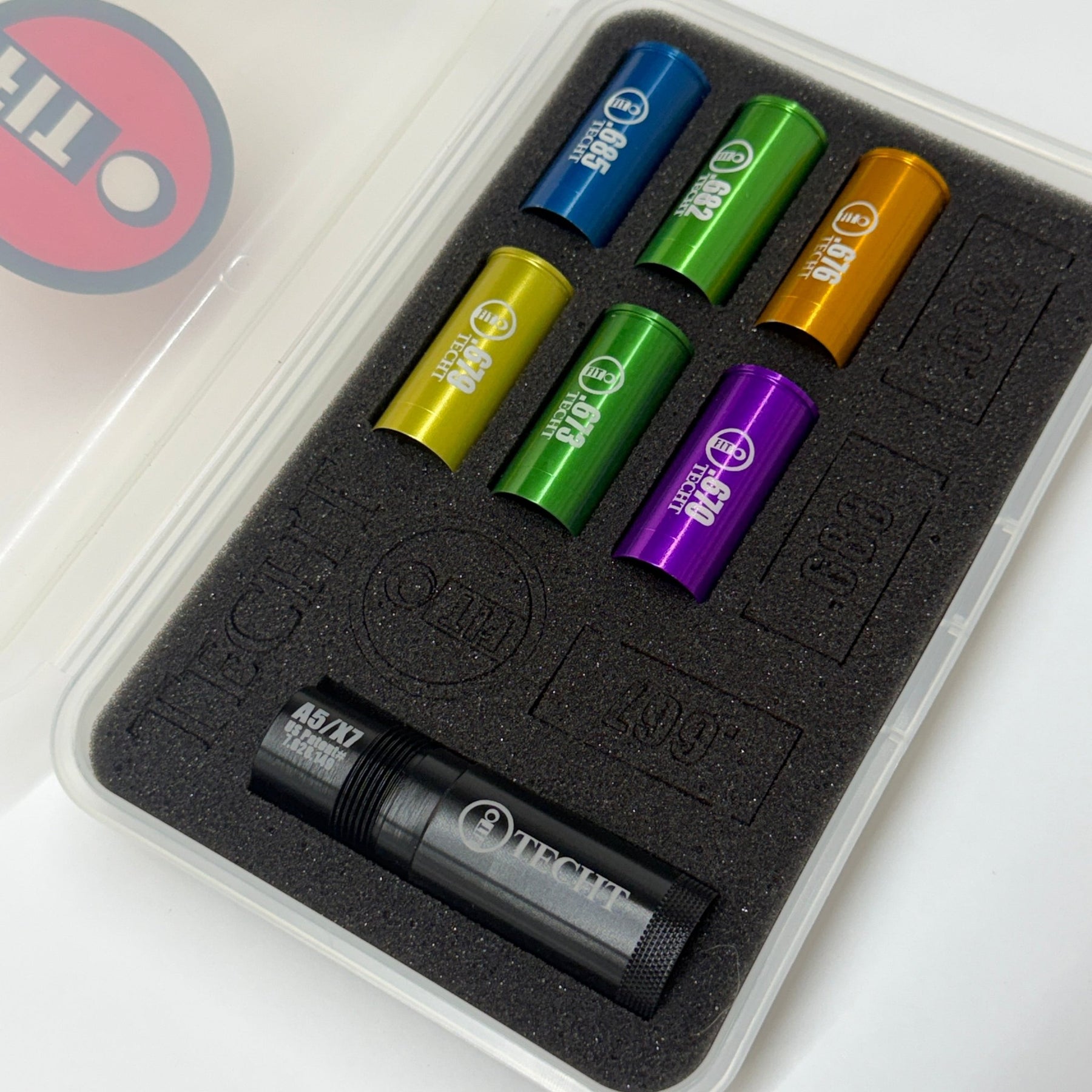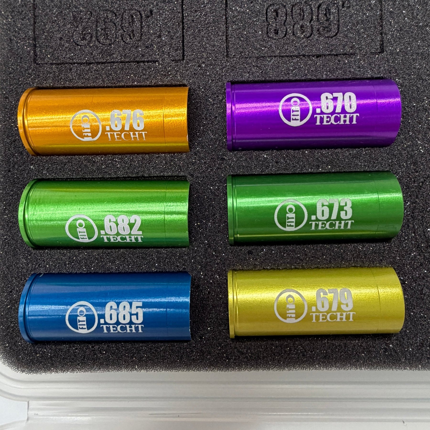 Paint-to-barrel match in paintball has always been one of the most important things you can do to increase your guns accuracy and efficiency. The problem is, paint manufacturers are progressively producing paint at smaller sizes and the bores to fit them don’t exist. TechT saw this problem and did something about it with the new iFit Kit. This 6 piece barrel adapter kit comes with the barrel threads of your choice, as well as six bore sizes (.685. .682, .679, .676, .673, .670). With this kit, you can rest assure that you are squeezing the maximum performance out of your paintball gun, regardless of how small the paint that you are shooting may be. Pick up this great bore kit today and make sure your paint says 'iFit.'