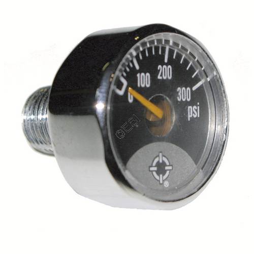 This micro gauge has a 1 inch wide face and can be put anywhere you have an extra 1/8 inch NPT gauge port. 300 PSI range. This is the Long version. It has extra threads for body clearance.