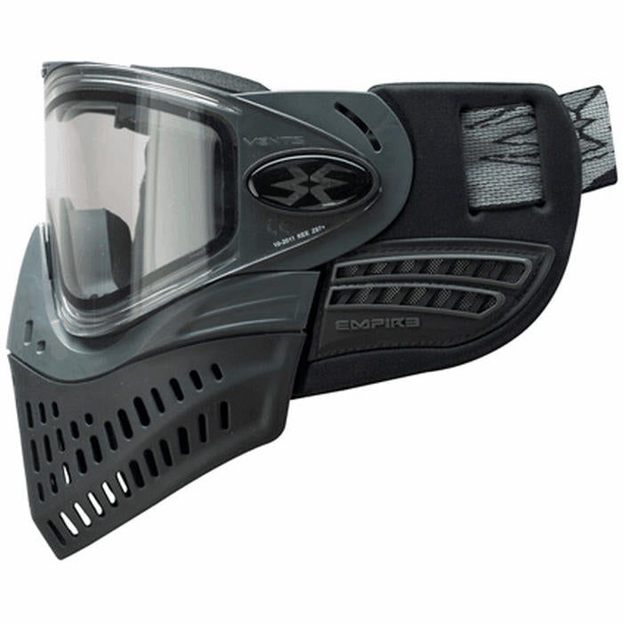 The Empire E-Flex Paintball Goggle System is the latest and greatest from Empire paintball. Introduced in 2012, this paintball mask combines the features of the venerable JT Spectra Flex goggles (comfortable with many interchangeable options) with the Empire E-Vents Goggles (wide field of view and easy to change lens). We can’t find any drawbacks on this top of the line paintball mask. We are often asked, “What is the most important upgrade or item for playing paintball?” Our answer is always “get the best mask you can”. You can play with any paintball gun, but your mask will determine how comfortable you are and how well you can see on the field. The Empire E-Flex is higher recommended as your paintball mask choice.