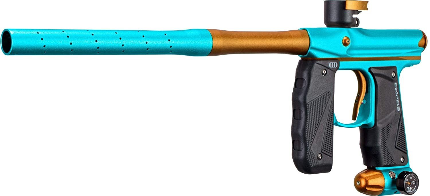 The Empire Mini™ GS is the next generation of a paintball marker legend. The team at Empire has taken the proven Mini marker platform and designed and developed it to be even better. In addition to the battle proven Mini engine the GS includes a full wrap-around rubber foregrip that creates a secure grip and protection from paint and the elements. The Mini GS also adds an On/Off ASA that eliminates any thread issues and makes for smooth removal of your tank.