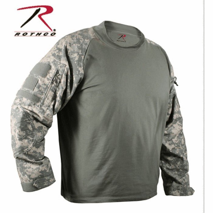 Made from 50% Nylon/50% Cotton RIP-STOP sleeves (ACU Digital Color) with 60% Cotton/40% Acrylic chest and back (Foliage Color)