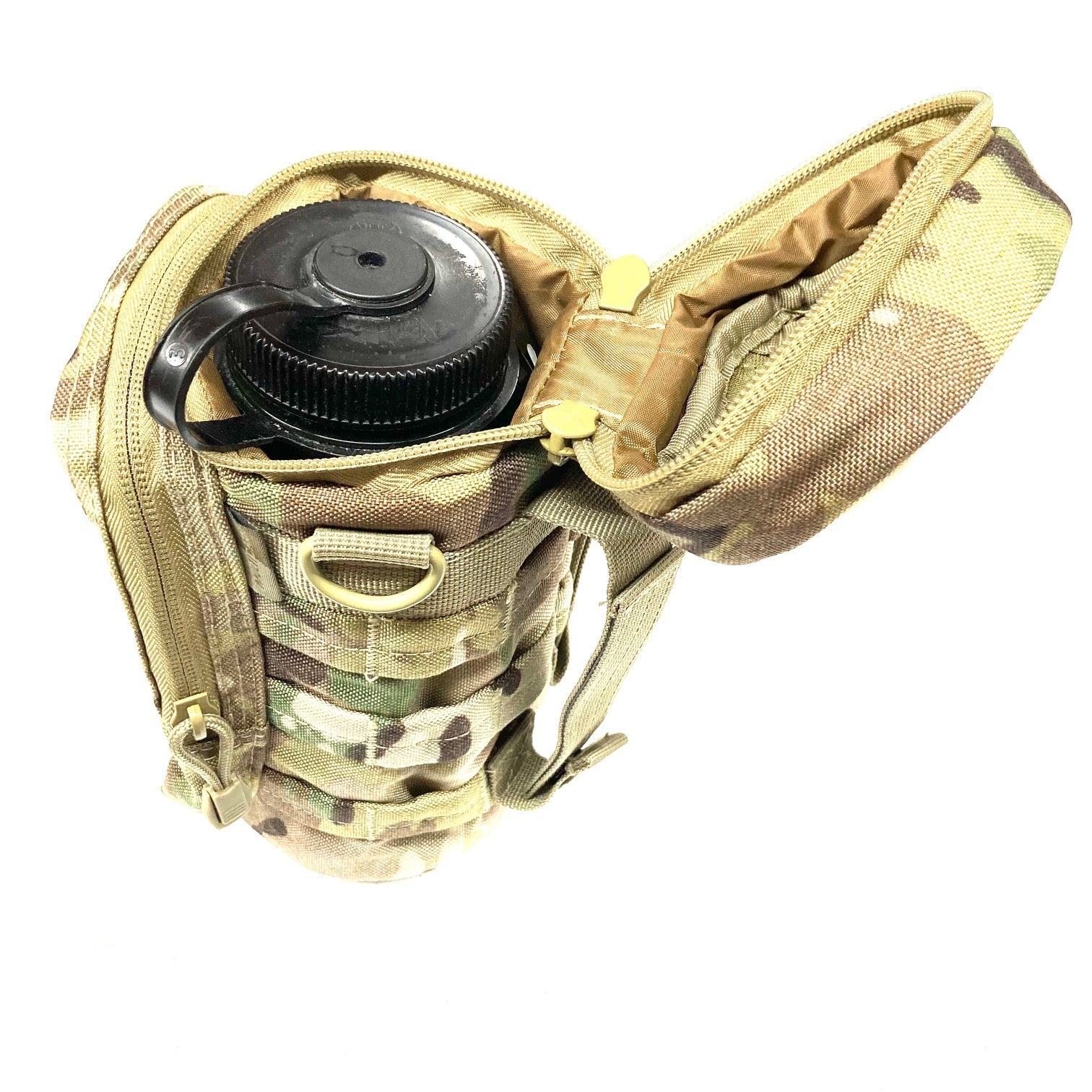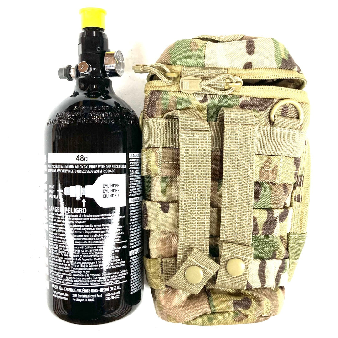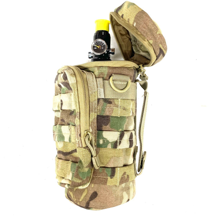 Discover this MOLLE Compatible HPA Tank/Water Bottle Pouch, crafted from durable polyester. Perfect for tactical Paintball, Airsoft and outdoor excursions, this MOLLE pouch features ample storage to fit a 48ci HPA Tank or most 34oz Water bottles, MOLLE loops, and a straw hole for convenient hydration. Note: Bottle and Tank Not Included.