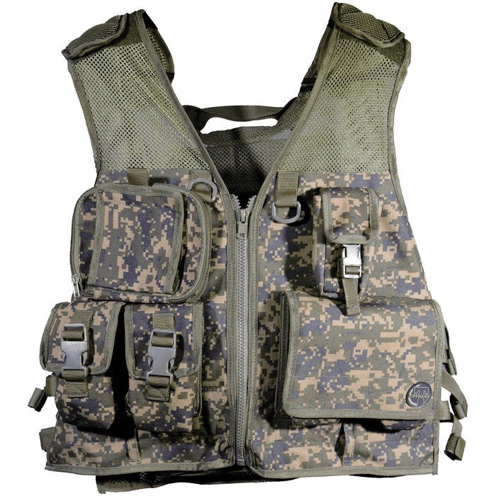The Tippmann Pro Vest is for the serious scenario and mil-sim paintballers. It combines a very breathable and cooling mesh under layer with an excellent assortment of pouches to carry all of your extra gear, magazines, pods, maps, and even features a horizontal tank holder on the back. You will truly blend in with your surroundings with this vest, as it is Tippmann's great looking digicamo. The back also features four base pod slots, as well as two other expandable pod sleeves. This is a one size fits all vest, and has an integrated body wrap belt.