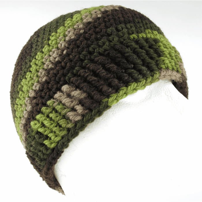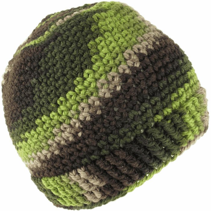 This is a multi color hand knitted wool beanie designed to keep your head warm while wearing an army helmet. These beanies are given to military soldiers in care packages. A portion of the purchase of this beanie pays for the making of several more beanies that are given away to the troops.